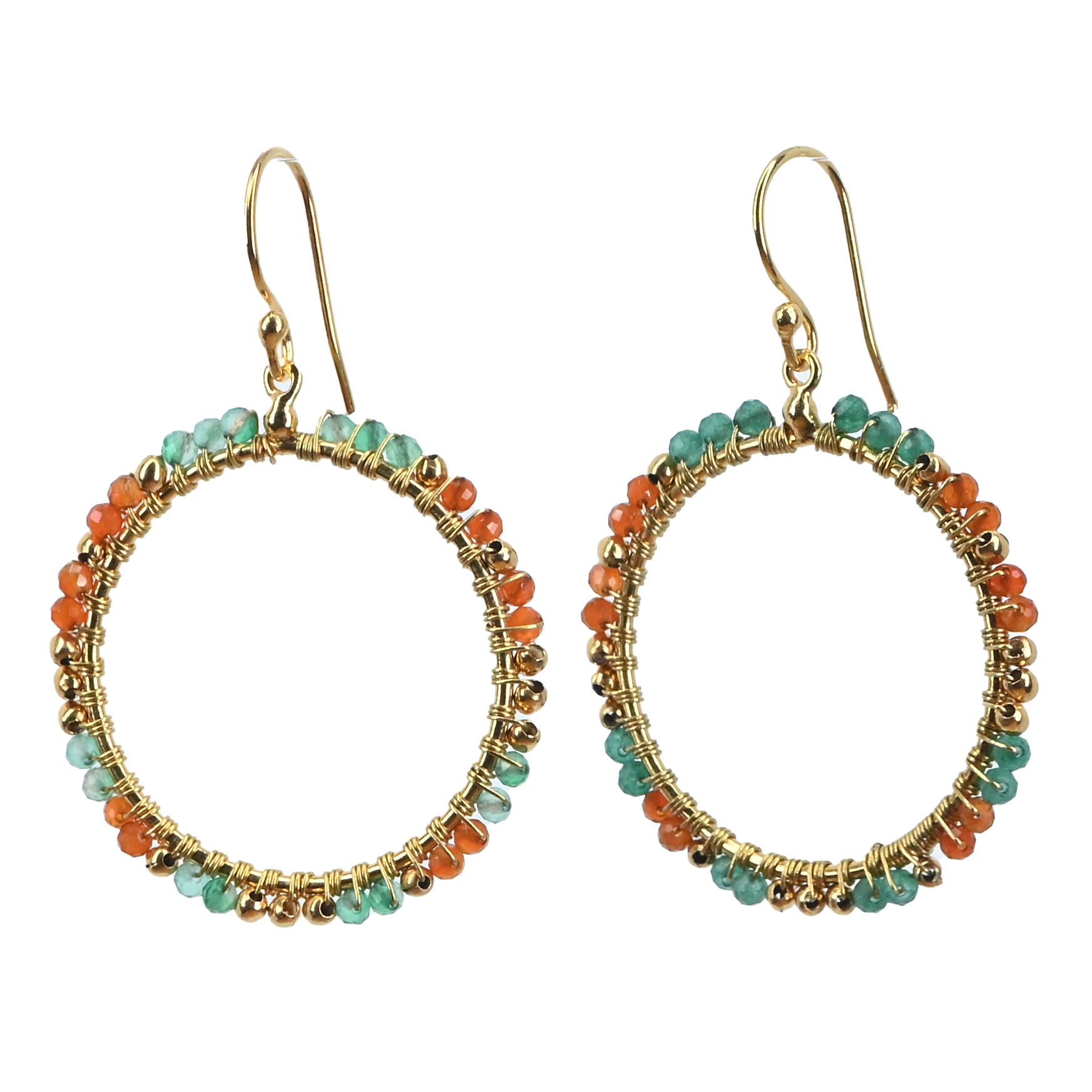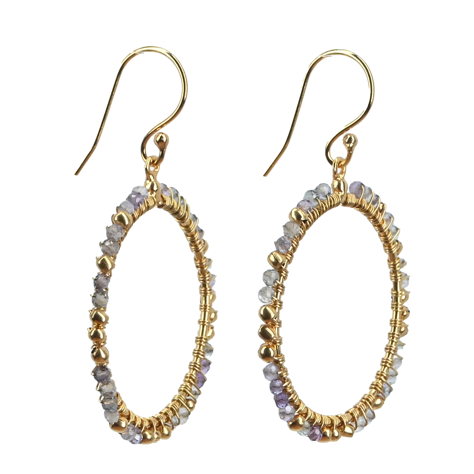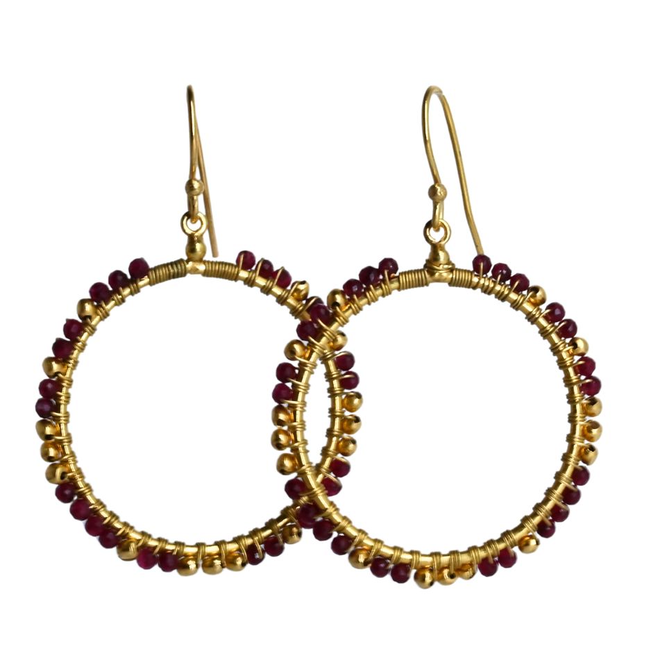 Stunning and classic brushed finish hoop earrings with a love swing set gemstone.