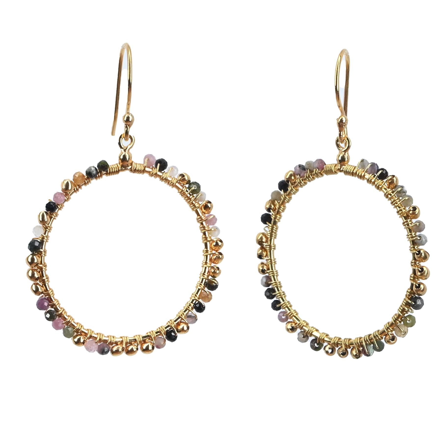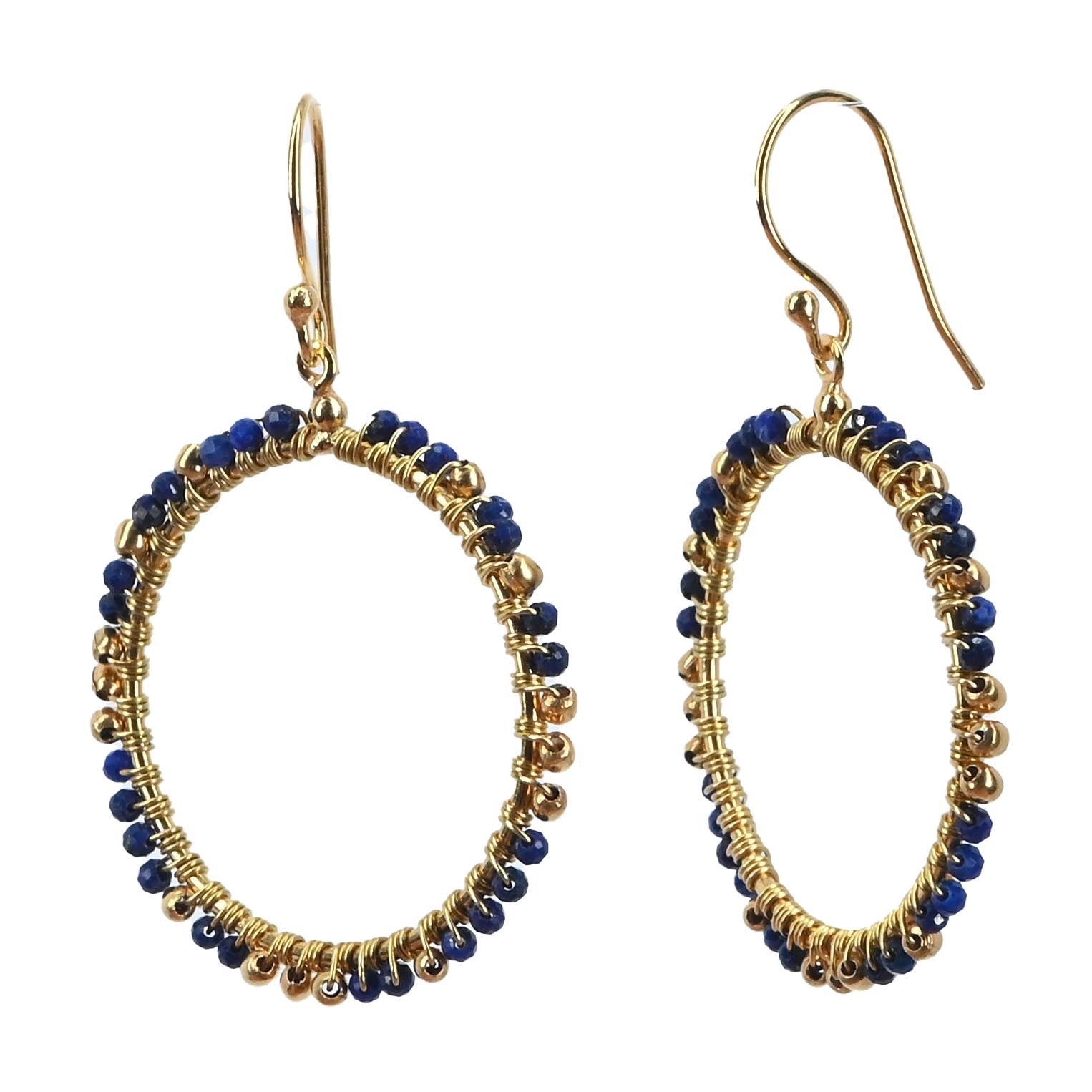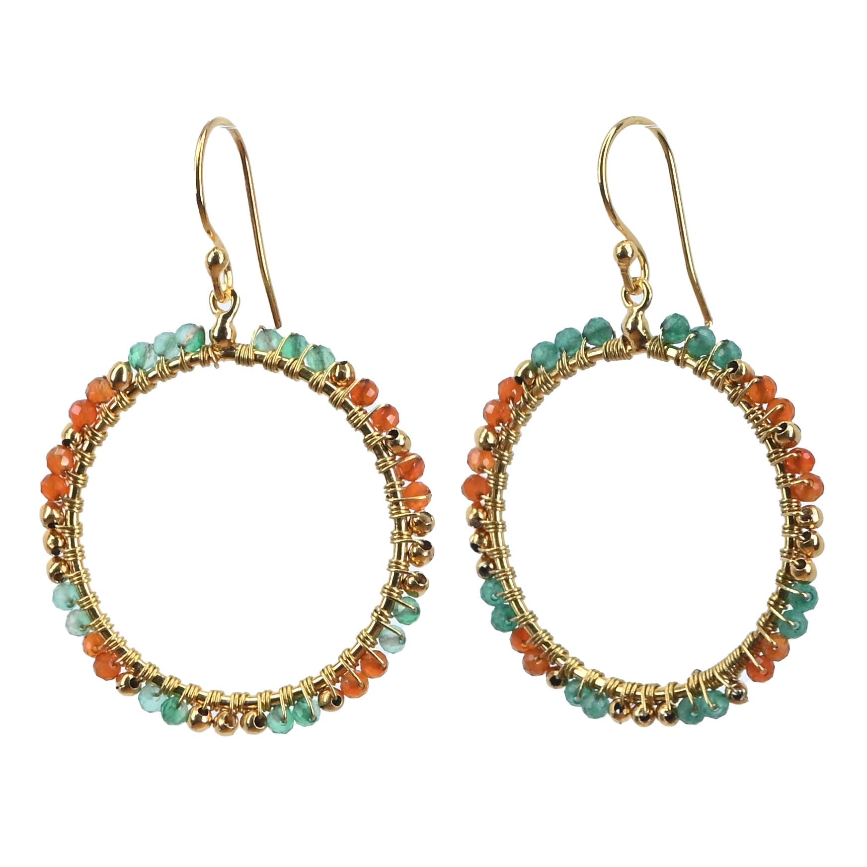 Stunning and classic brushed finish hoop earrings with a love swing set gemstone.
