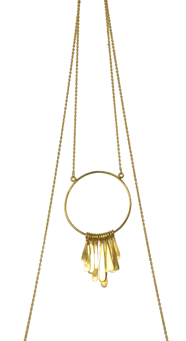 Euro Gold Fringed Circle Necklace 60 cm A49A