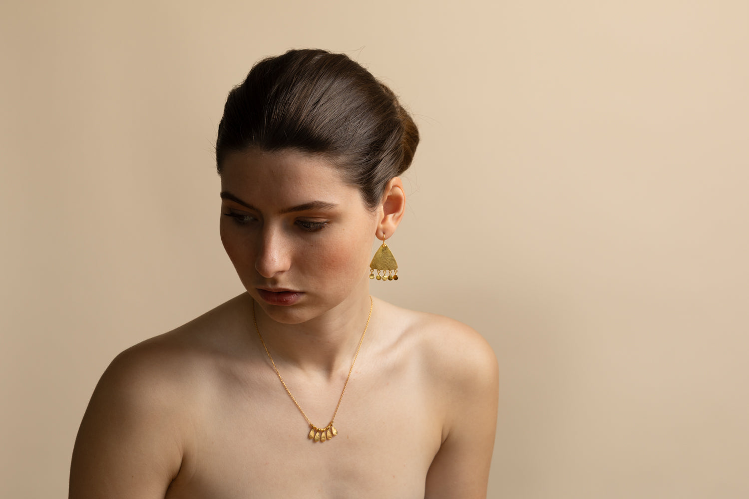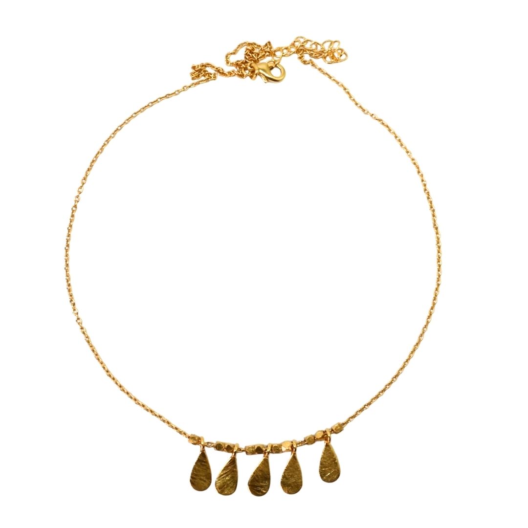 Stunning and classic, sweet little short necklace with 5 teardrop tassels on a chain.