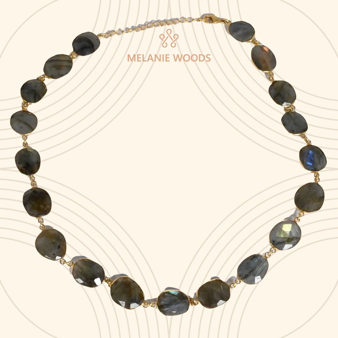 Gorgeously bold Necklace with fabulously large gemstones, shimmering with flashes of colour.