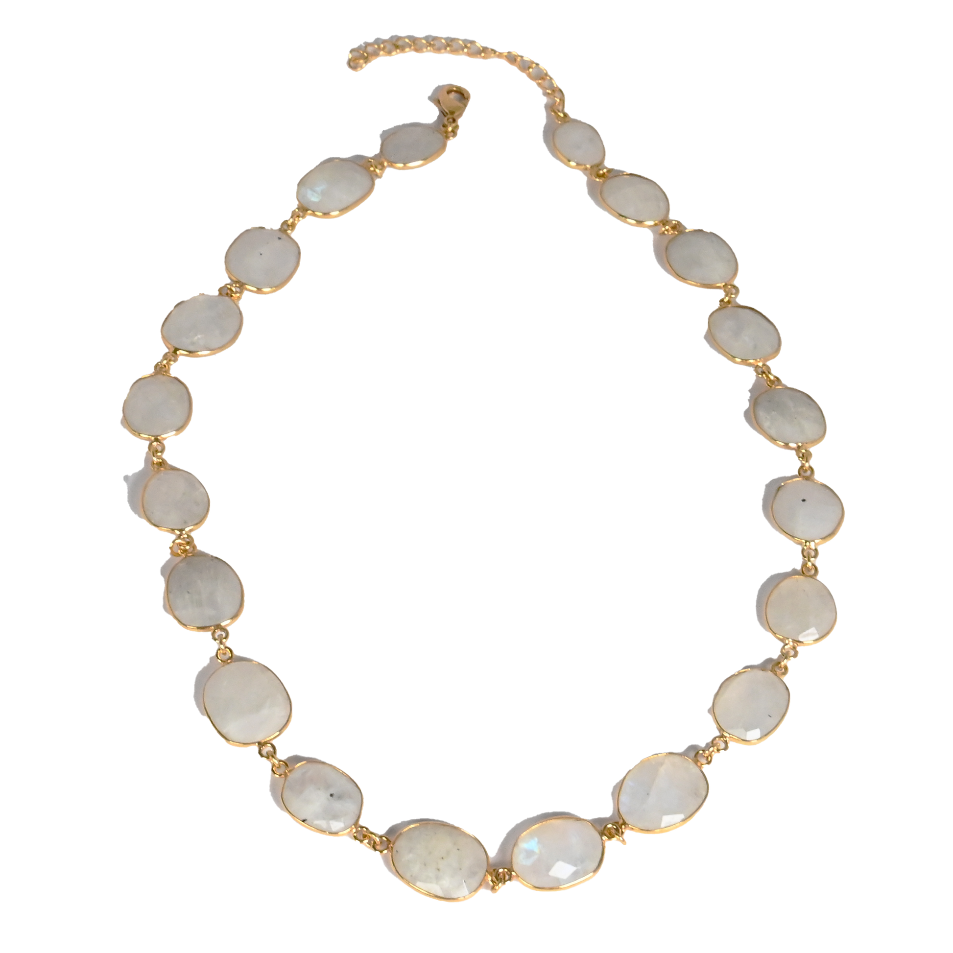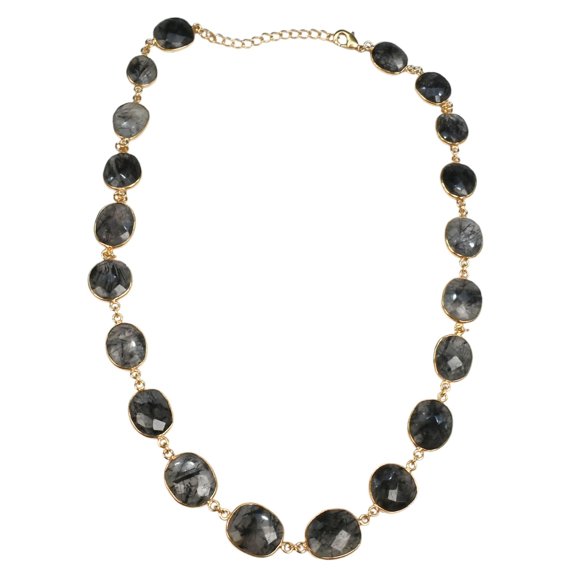 50 cm with a 5 cm extender with large gemstones 15 x 15mm connected by chain.