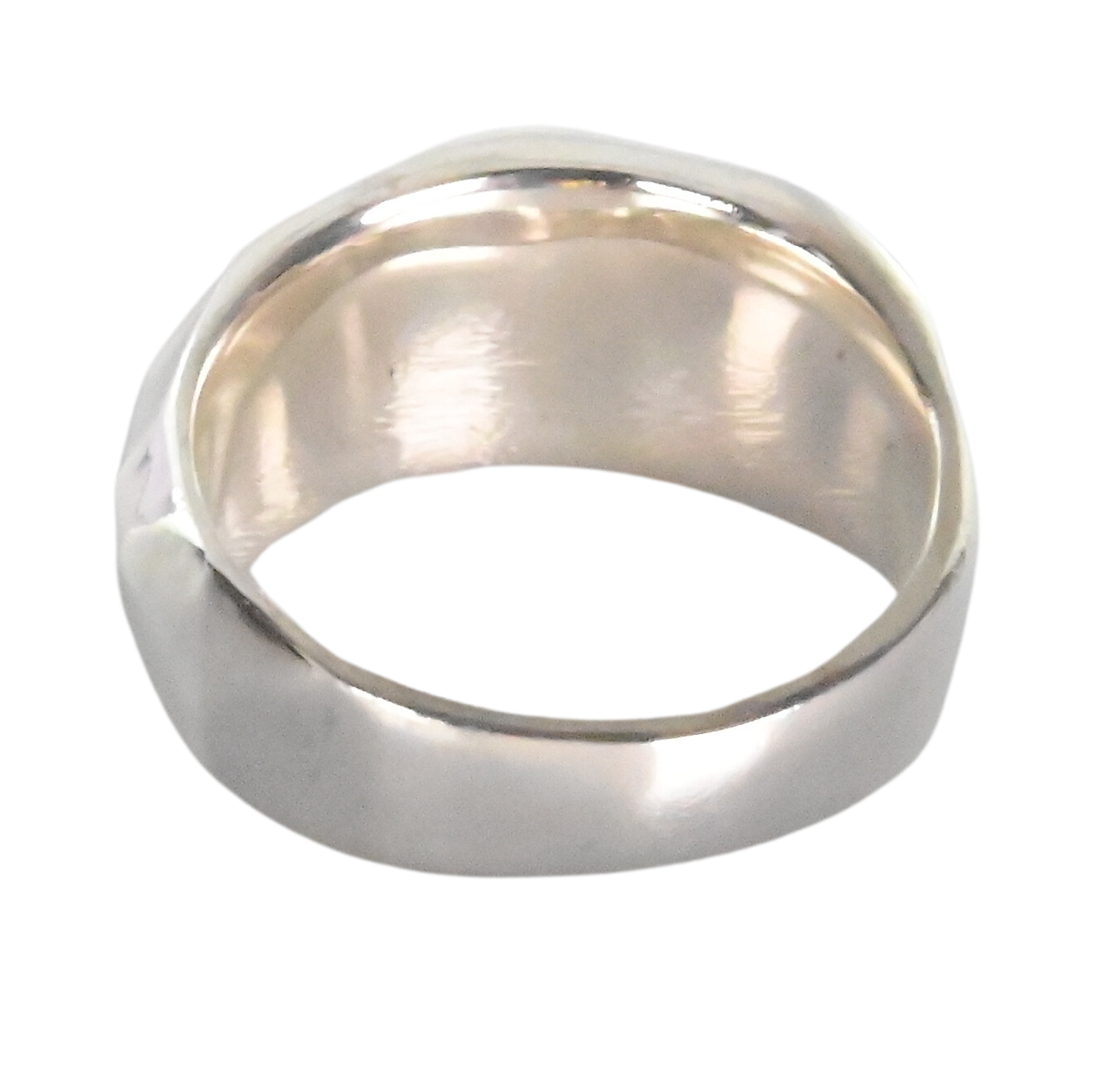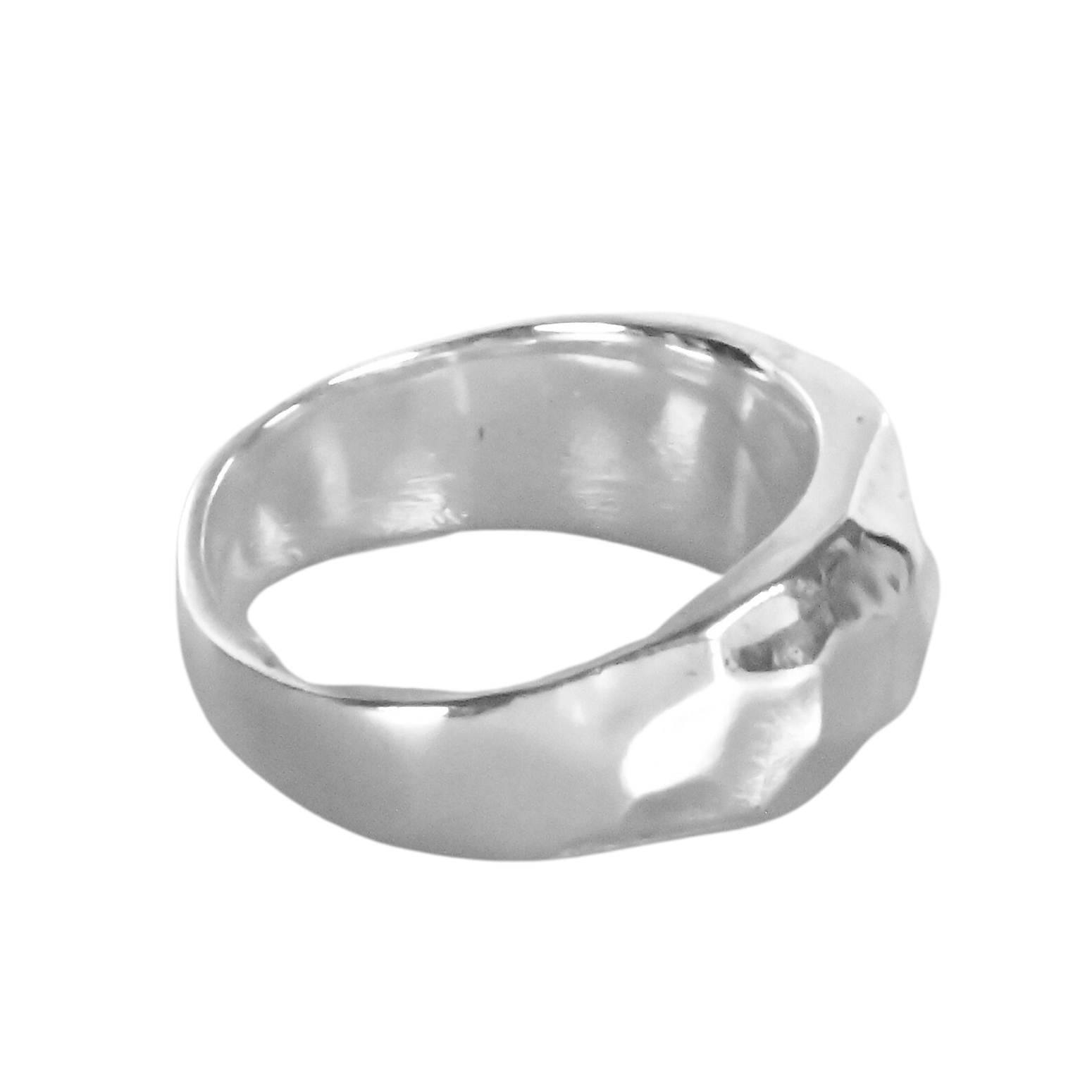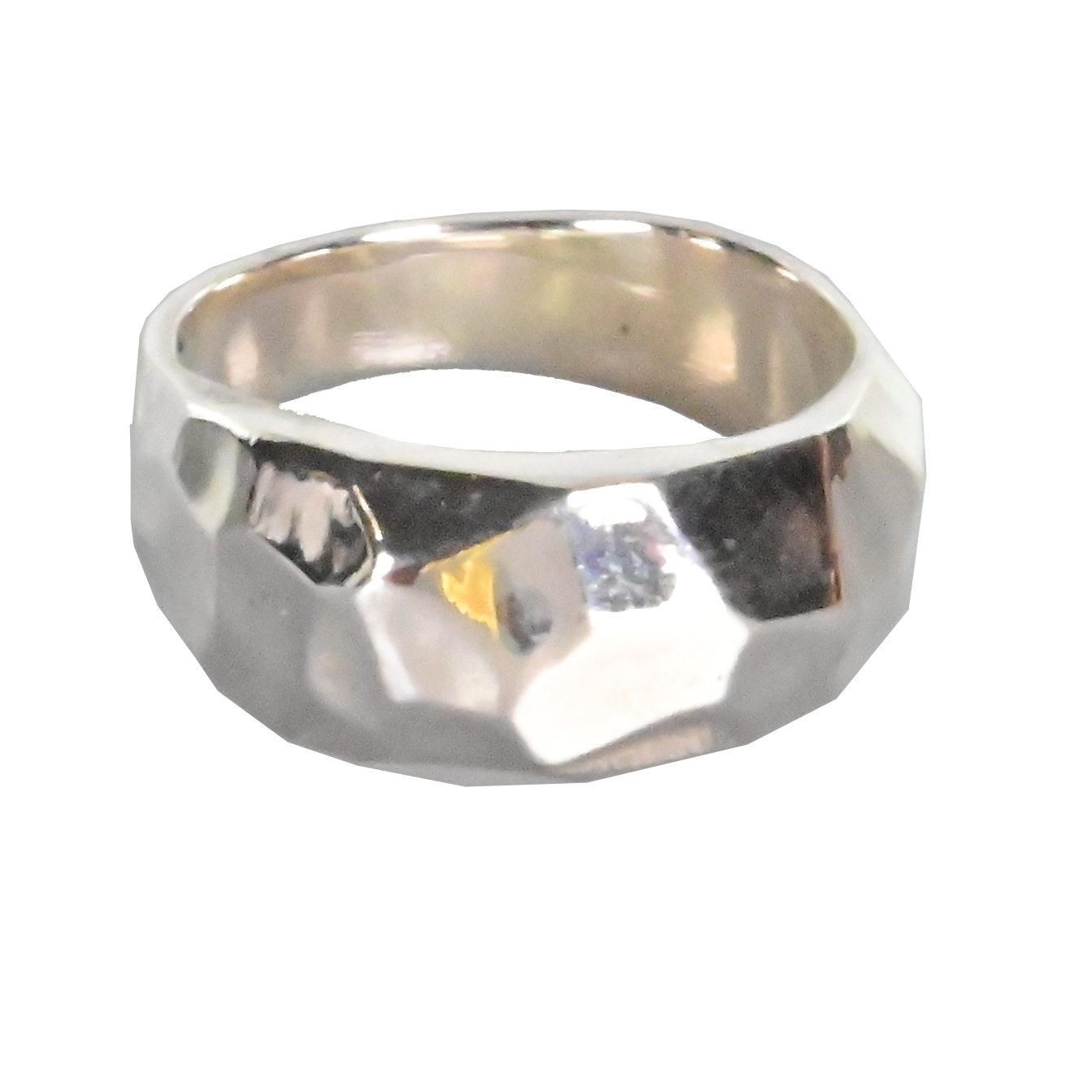 Solid silver ring with a faceted profile.
