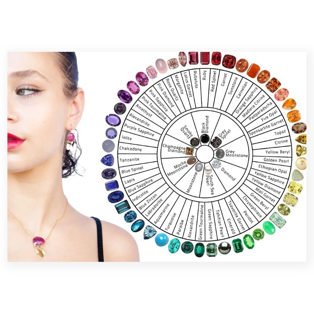 One side of the card is a promotional image with our details and q code to our site, and the other is a gem chart for identifying the many gems that are included in our designs